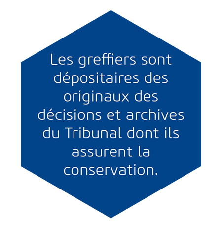 Les greffiers sont dépositaires des originaux des décisions et des archives du Tribunal dont ils assurent la conservation. lls en délivrent des copies authentiques.